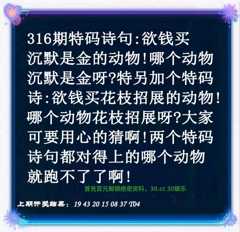 | 315期:⚽绝杀一头 ╠3头╣ 开:虎04准 |